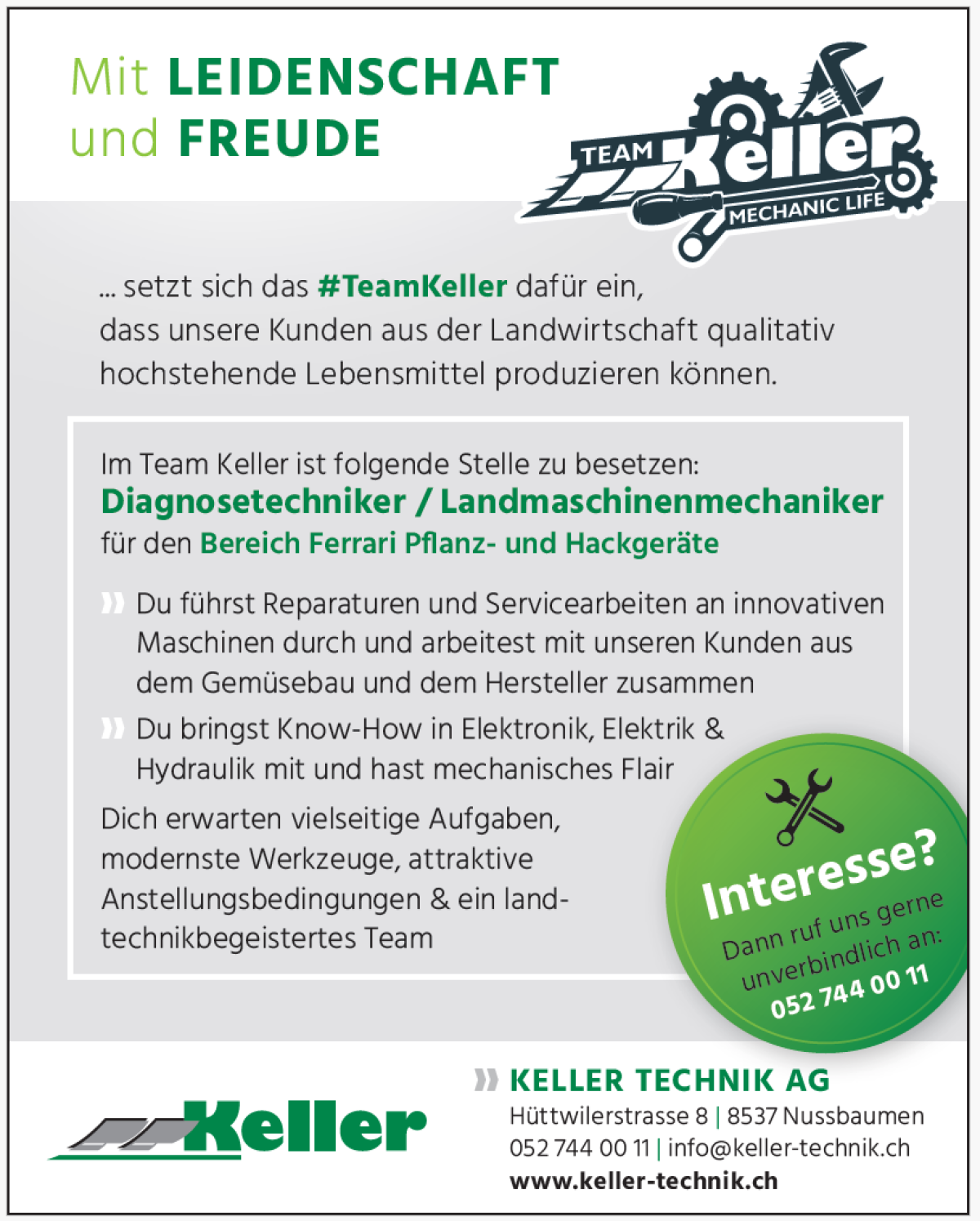 Mit Leidenschaft und Freude setzt sich das #TeamKeller ein, dass unsere Kunden aus der Landwirtschaft qualitativ hochstehende Lebensmittel produzieren können.